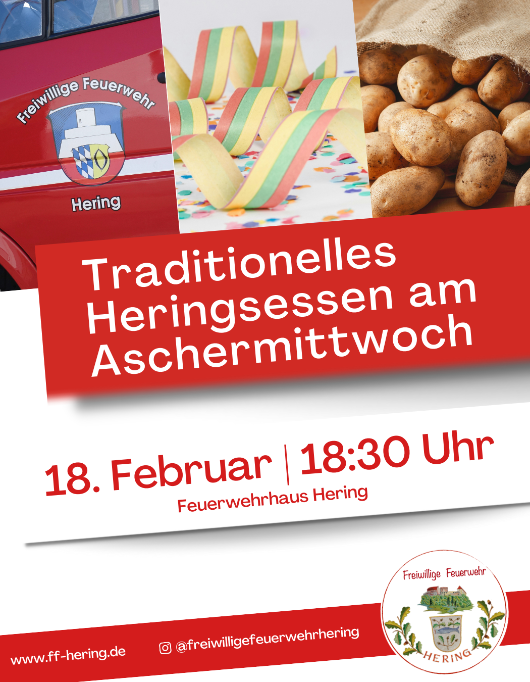 Feuerwehrhaus Hering Odenwaldstraße 29, Hering, DeutschlandDer Verein lädt zum traditionellen Heringsessen an Aschermittwoch ein. Wir starten ab 18:30 Uhr im Feuerwehrhaus Hering. Es wird Quellkartoffeln und Dupp Dupp (mit und ohne Hering) geben sowie verschiedene Getränke (unter anderem Büble Fassbier). Wir freuen uns auf einen geselligen Abend mit Euch, um die Fastnachtszeit ausklingen zu lassen.